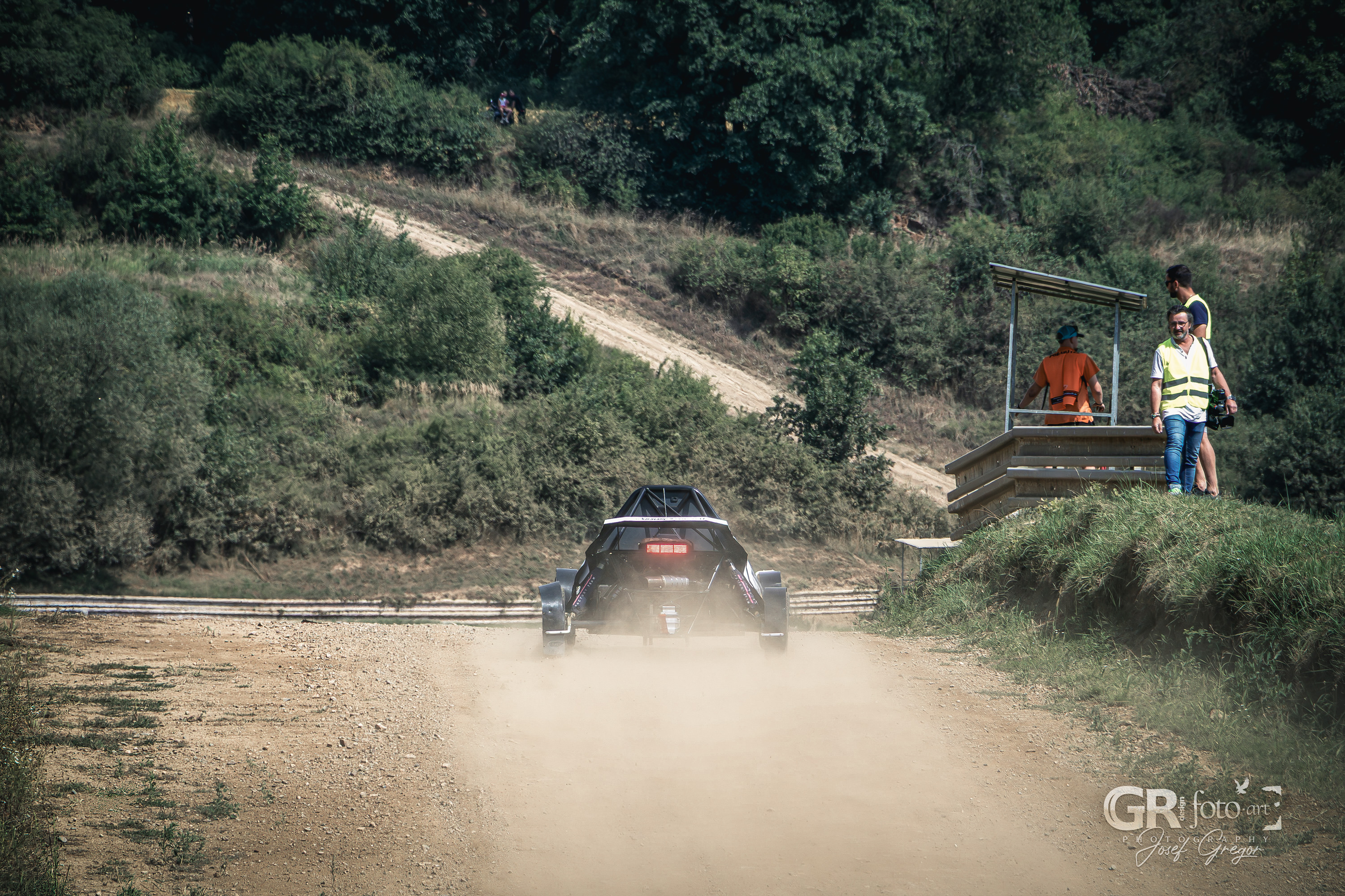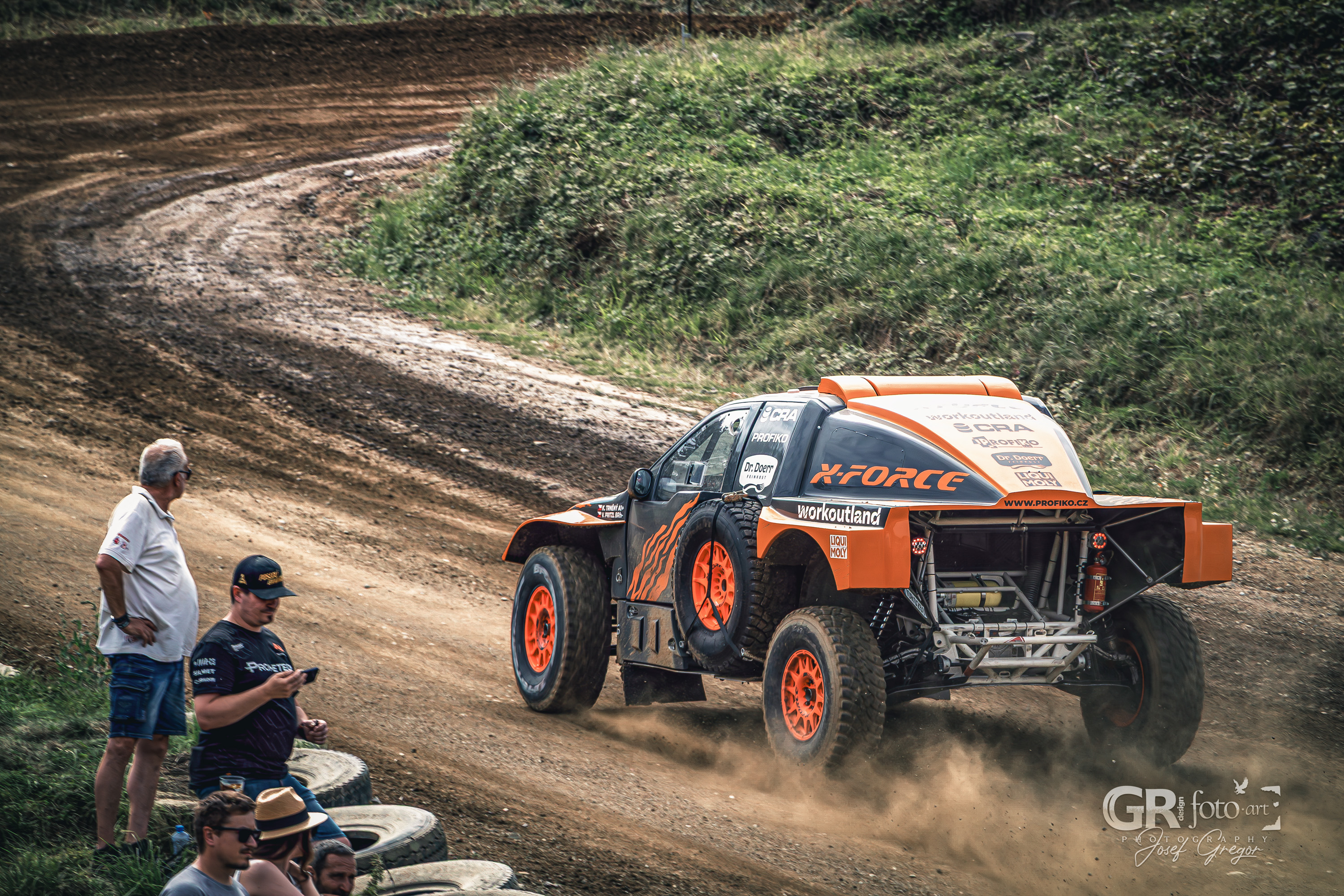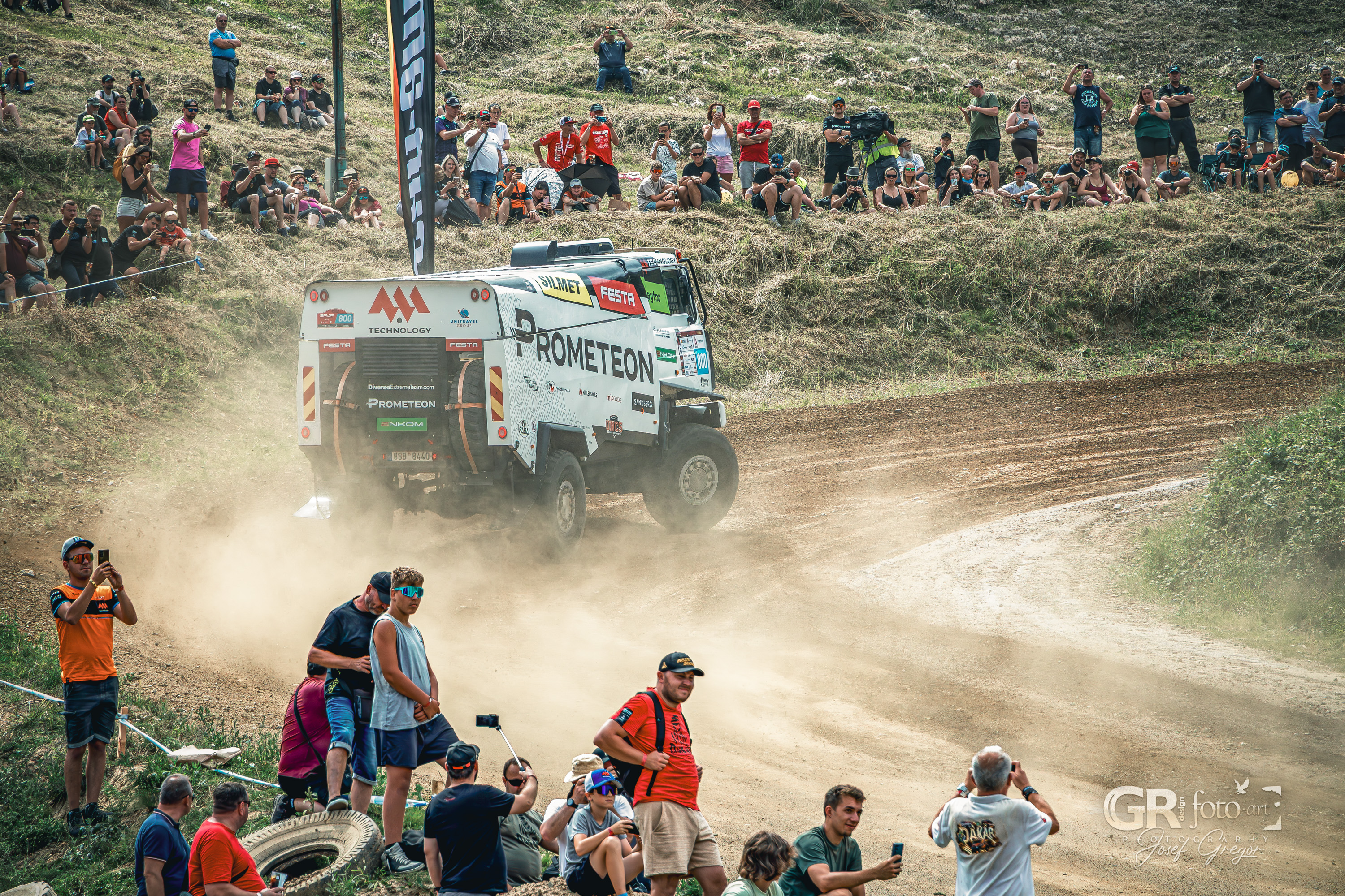 Program se jel prakticky celé odpoledne, s jen krátkými pauzami. Závodníci se střídali na trati, zatímco mimo ni probíhaly rozhovory a besedy. Stání ve frontě na občerstvení tak bylo obohaceno probíhajícím programem. Pro fotografy ale letošní ročník znamenal i pořádnou výzvu. Slunečné počasí, sucho a horko proměnily autokrosovou dráhu v prašnou arénu, kde stačilo jedno projíždějící auto a člověk dostal „denní dávku“ prachu. Fotky před postprodukcí vypadaly téměř nepoužitelné, ale s trochou práce se většina dala zachránit. Horší to bylo s technikou – můj Canon R10 s objektivem 18–135 mm není prachotěsný, takže při průjezdech jsem musel opatrně zoomovat a neustále čistit tubus objektivu. Naštěstí se zdá, že se prach dovnitř nedostal. Problémy občas nastaly i při ostření přes hustý prach, ale na důležité momenty Canon obstál se ctí.