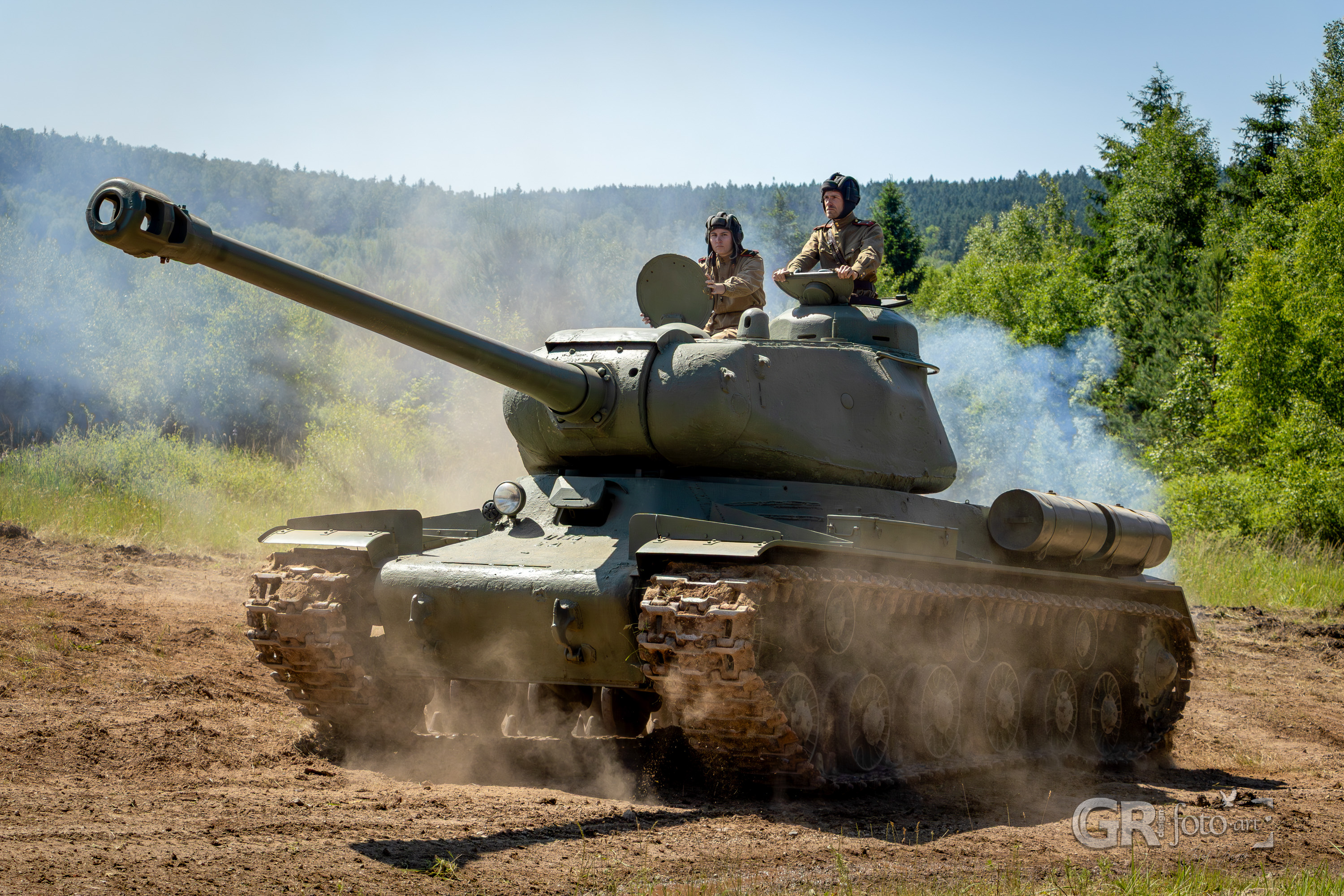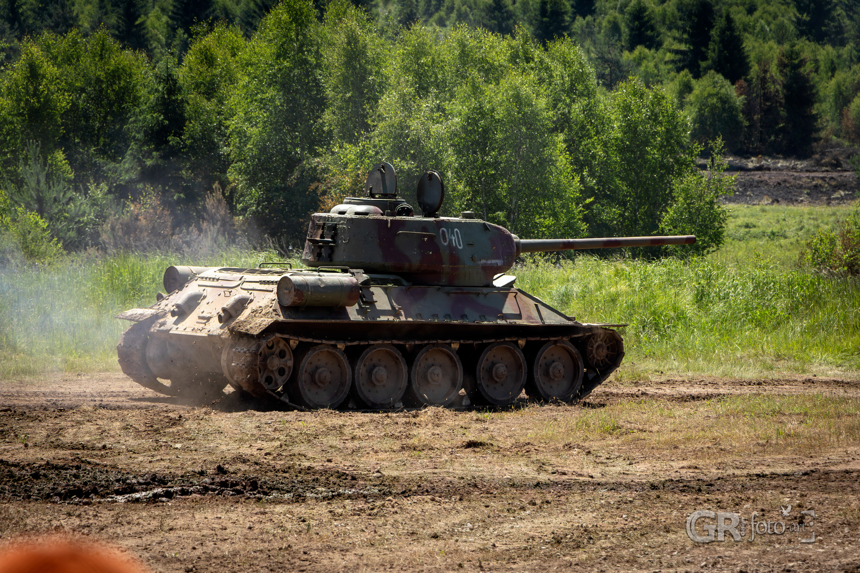 A pak už to jelo. Historické tanky, zaparkované před podiem, se vydaly na cestu kolem polygonu. Tahle část byla skvěle zorganizovaná. Divácký prostor měřil přes 400 metrů a všechna vozidla projížděla těsně kolem lidí. A aby si je každý opravdu stačil prohlédnout, objížděla trasu několikrát. K vidění byly tanky sovětské produkce jako T-34/85 nebo IS, ale i německé kusy jako Tiger či Hetzer. Nechci vypisovat všechny — nejsem takový znalec.
