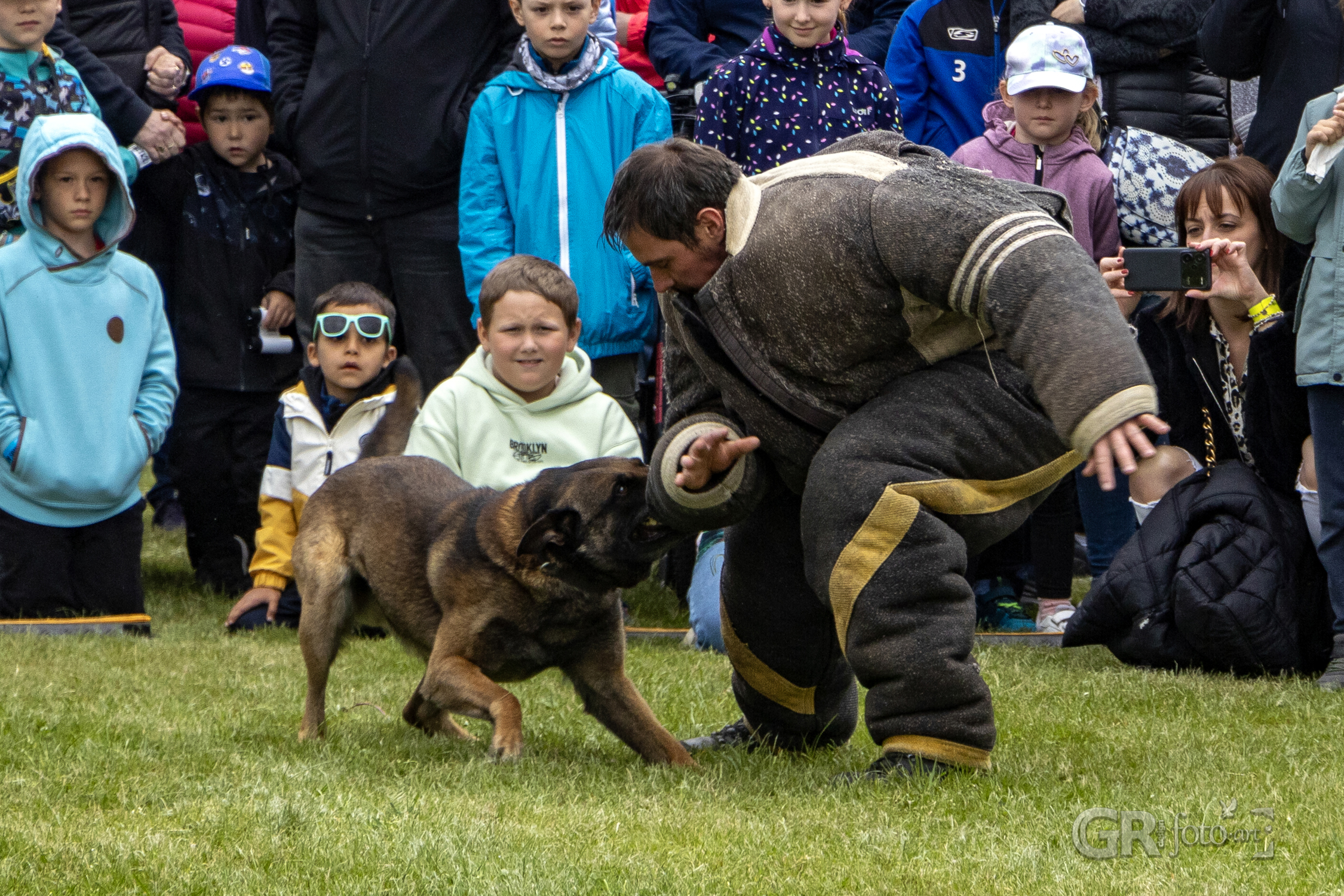 Následovala ukázka práce policejního psa a jeho psovoda. Poslušnost, pohotovost, zadržení pachatele – v podání čtyřnohého profesionála to byla ukázka síly, disciplíny a důvěry. Bylo i vidět, že si zásah na agresora maximálně užíval.