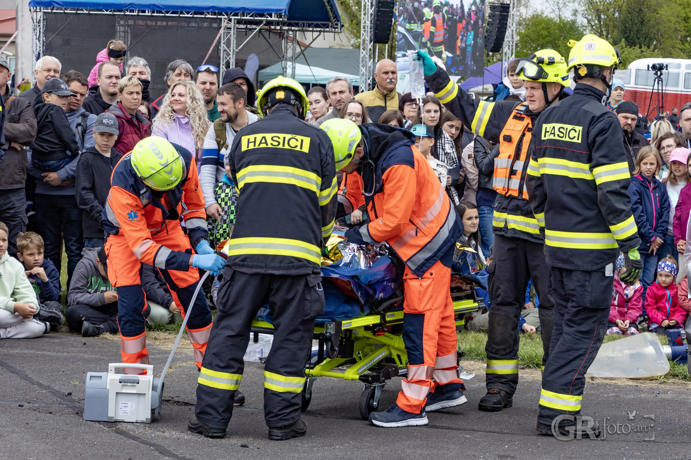 První vystoupili Soptíci z Hamru – malí hasiči, kteří si svou roli při simulované havárii letadla užívali s obdivuhodným nasazením. Jejich odhodlání ocenil i starosta města, který jim osobně poděkoval a předal drobné dárky. Lidé, kteří neměli štěstí vidět akci z bezprostřední blízkosti, mohli sledovat dění na velkoplošné obrazovce. Skvělé řešení i pro ty, co se nechtěli mačkat v kroužku.