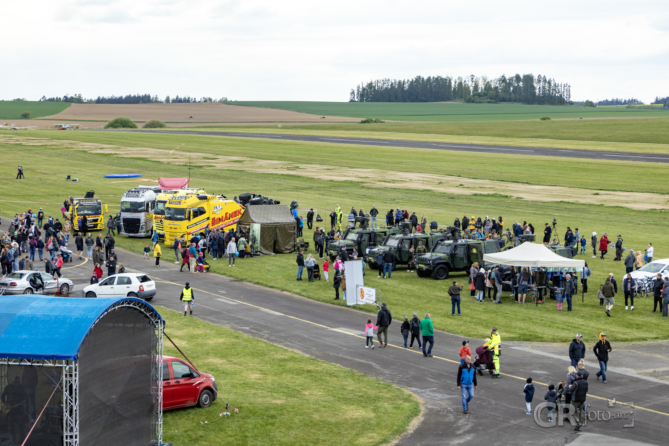 Už při příjezdu bylo jasné, že o akci je zájem. Parkoviště u letiště nabízelo místa za symbolickou stovku, ale my s rodinou jsme zvolili klidnější variantu – zhruba kilometrovou procházku alejí od kostela sv. Jakuba, kolem zrcadlově klidných rybníků. Chladný jarní vítr se občas opřel do větví stromů, jako by i on chtěl být součástí zásahu.