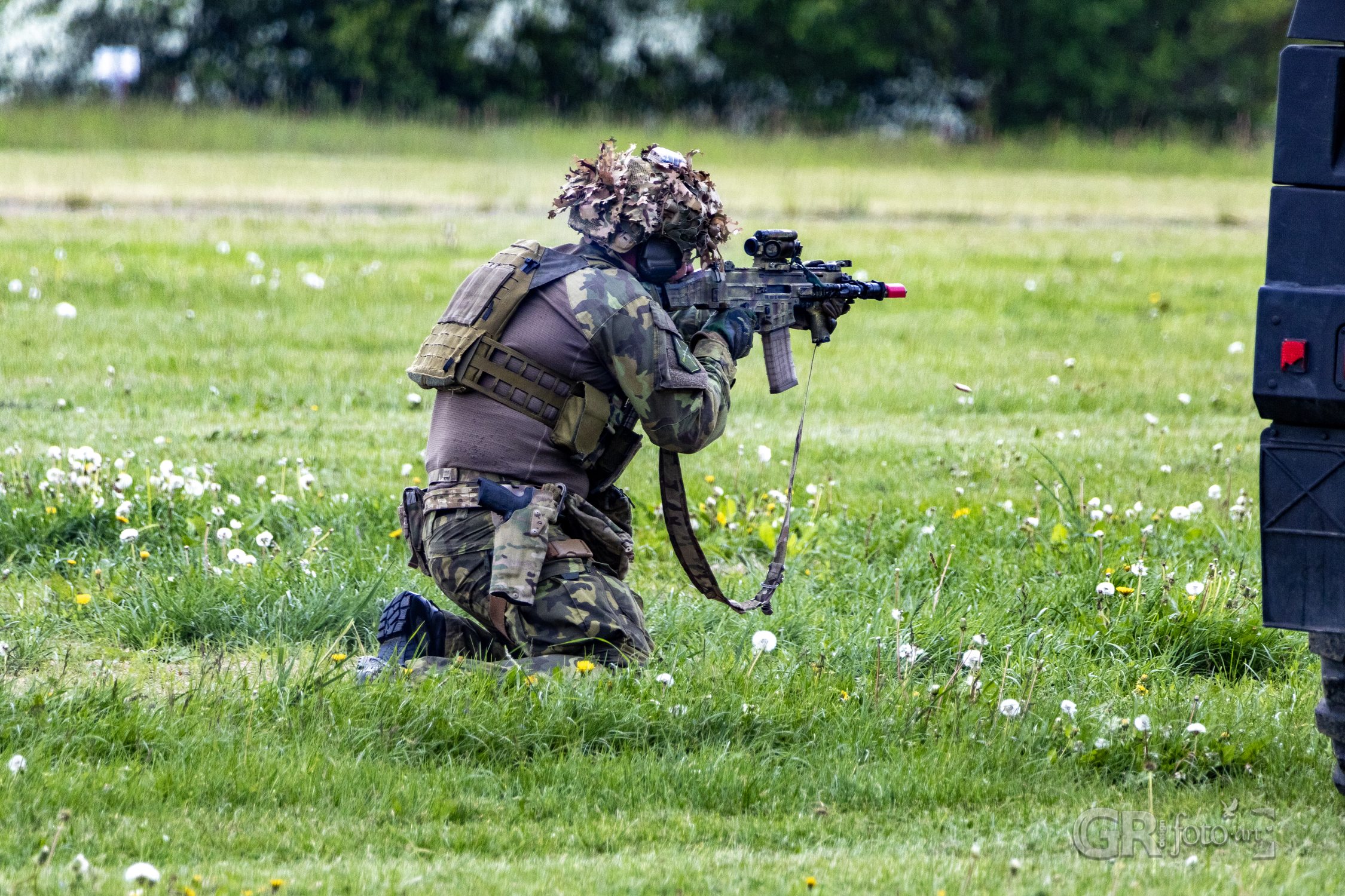 Závěr dne patřil armádě. Travnatá plocha se proměnila v bitevní scénu, kde 44. lehký motorizovaný prapor z Jindřichova Hradce předvedl dynamickou ukázku zásahu s efektní střelbou a taktickými manévry. Připomněli, že i bez boje může být jejich přítomnost silná a důležitá.