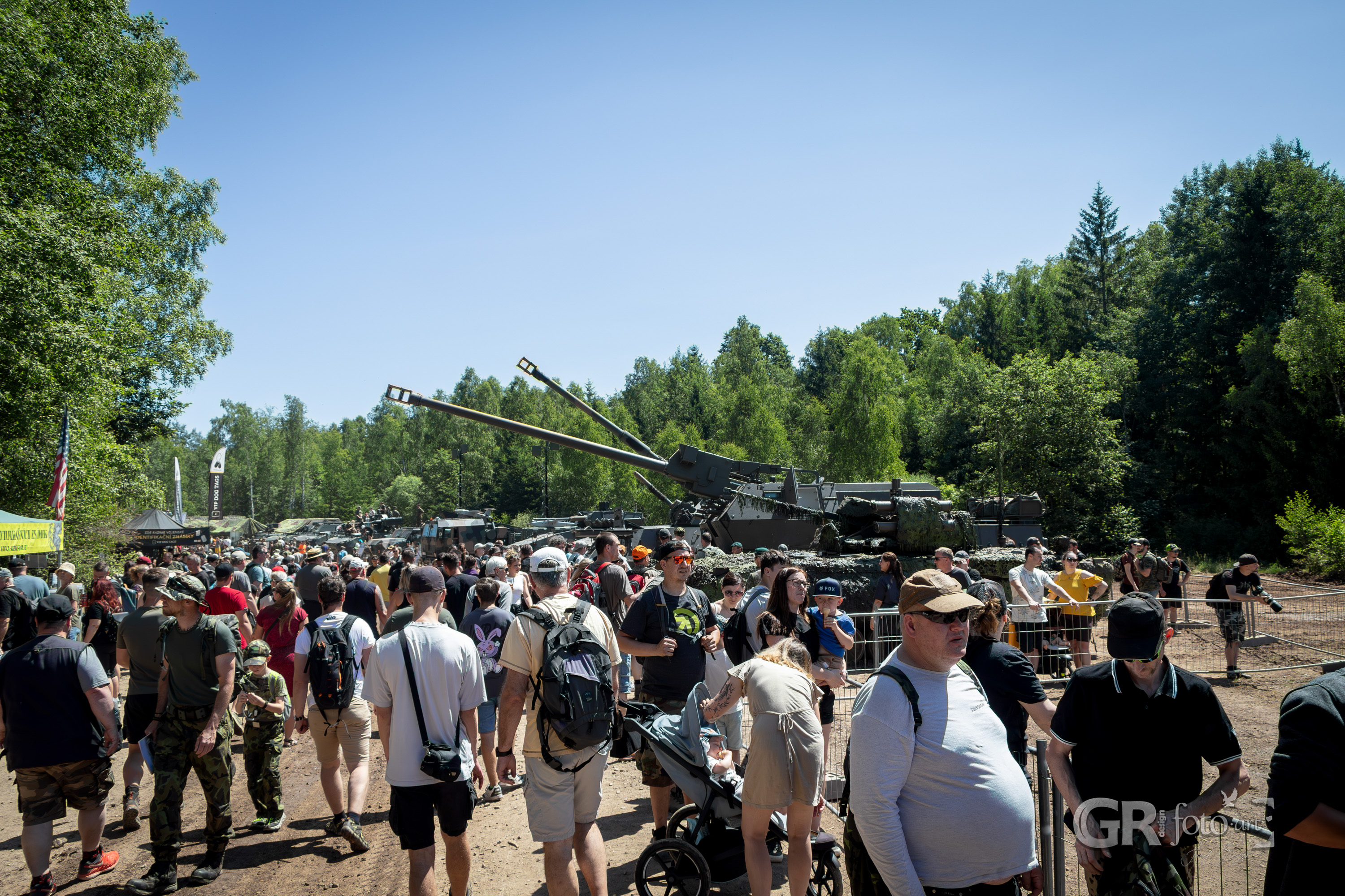 Po celý den probíhaly další přehlídky — třeba ukázky práce policejního psa nebo rekonstrukce bitev z druhé světové války. Strojů bylo dost a to nejen německé a sovětské výroby, ale i americké. Nechyběla ani dobová výstroj. Pozemní bitvu pak doplnil letecký útok. Zkrátka pořád bylo na co koukat. Organizace šlapala jak hodinky. Bez vstupného se ale těžko odhaduje návštěvnost, ale odhadem to byly tisíce lidí. Kolem poledne se už skoro nedalo procházet a pokud jste nechtěli někomu šlapat po hlavě, focení bylo docela o nervy. Mezi lidmi se pohybovali organizátoři, vojenská i civilní policie se samopaly. No není se co divit, takové akce můžou přitahovat různá individua. Možná i proto, že byla přítomná špička obrany. Kromě ministryně obrany i armádní velitelé a generálové. Po poledni se mezi davem najednou objevil i prezident. Obklopen ochrankou, která působila dost paranoidně, jak neustále sledovala okolí. Ale dává to smysl. Jen mě zajímalo, jak se na Bahna vůbec dostal? Viděl jsem jen, že přišel odspodu areálu. Anebo přiletěl? Protože na heliportech se mezitím objevil další vrtulník a ty jsou právě v dolní části. No, možná...