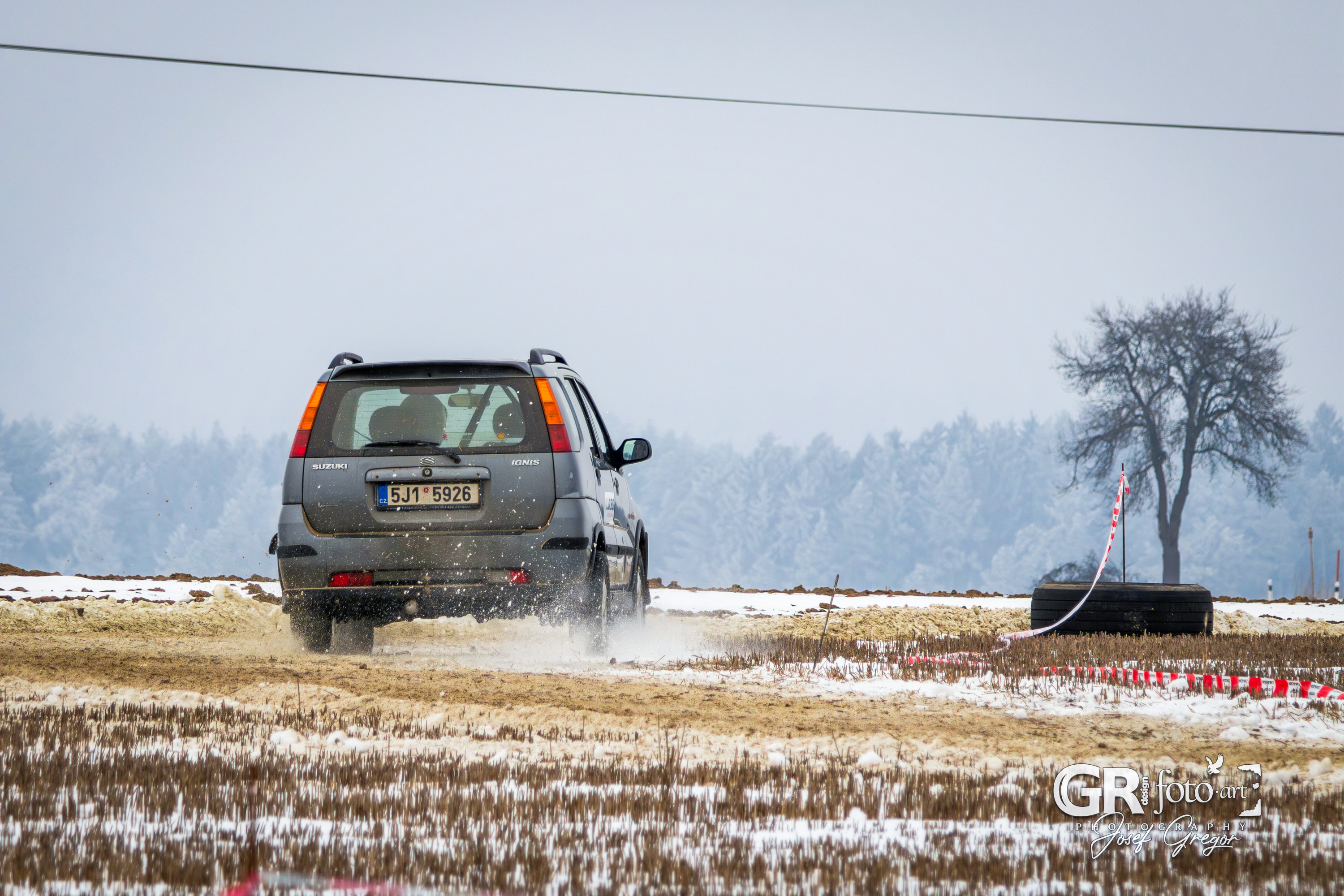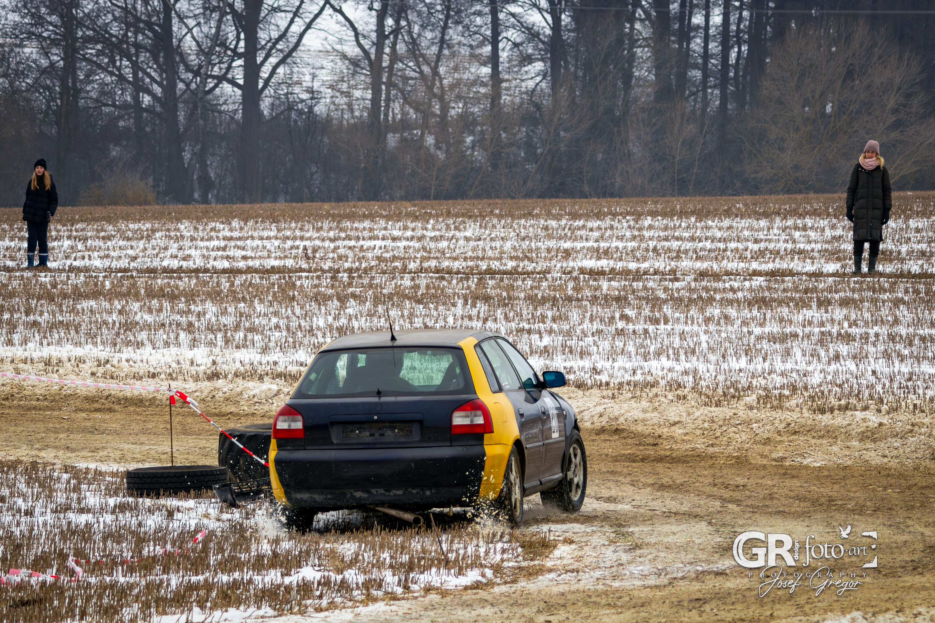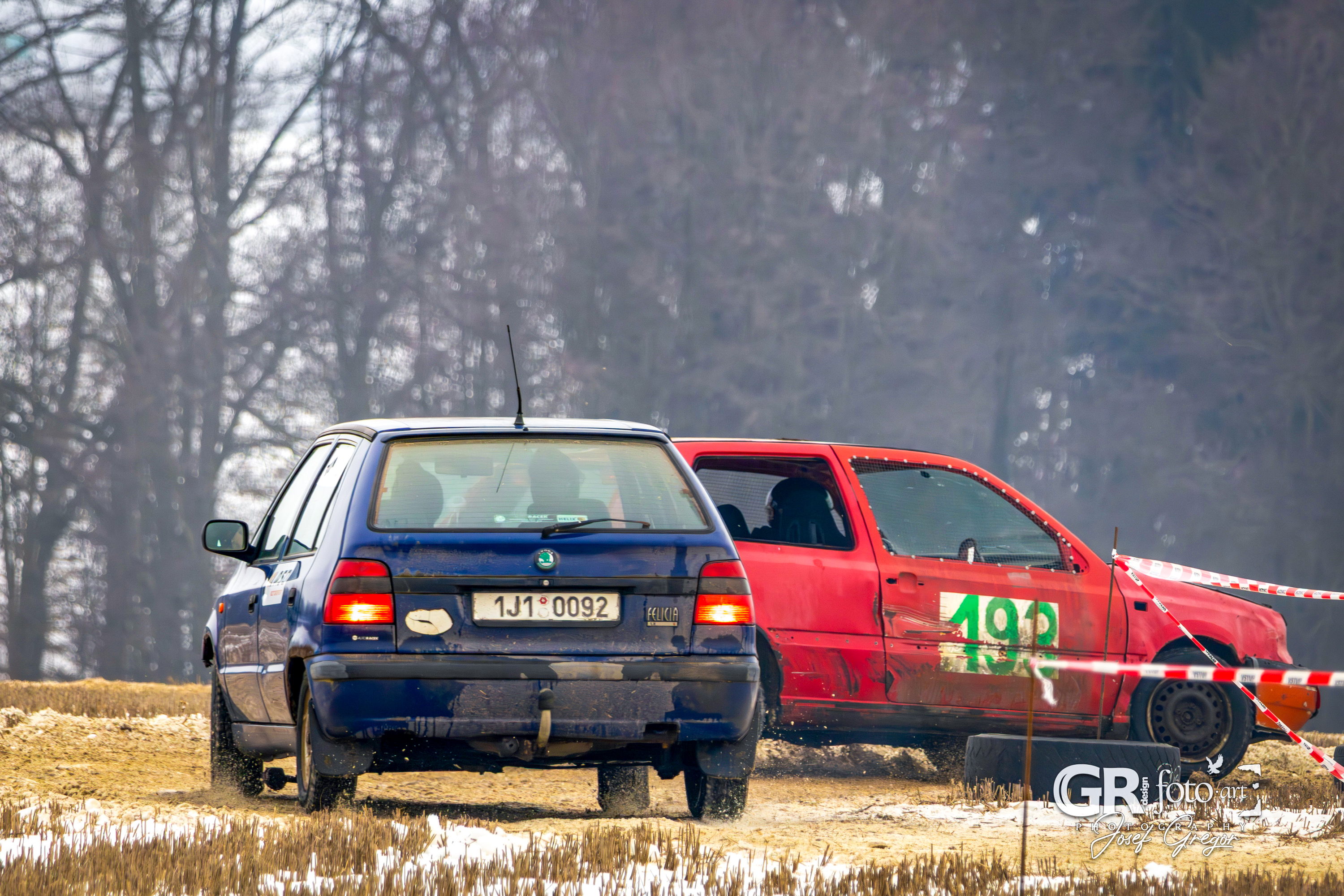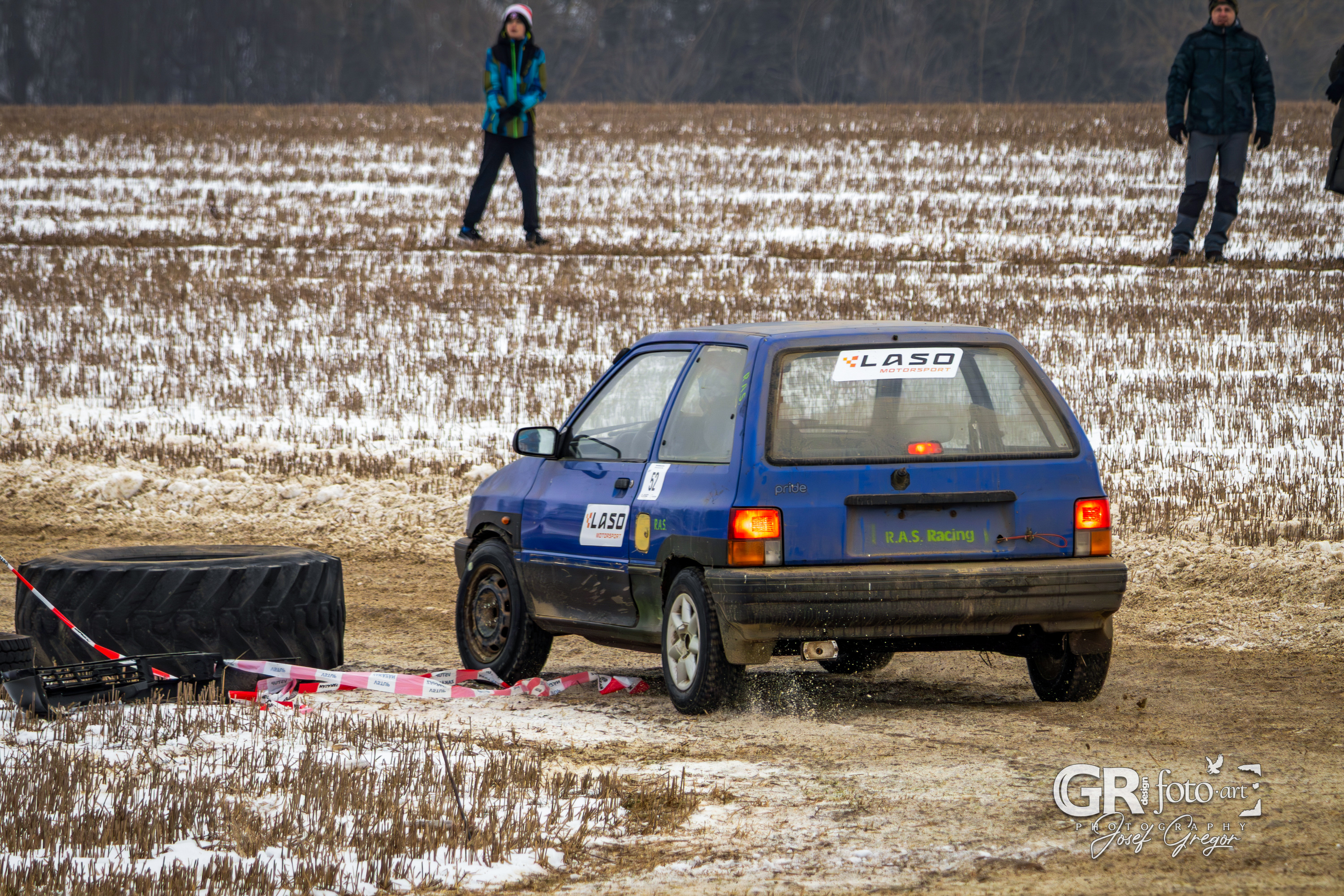 První měřené rozjížďky začaly kolem půl desáté, kdy bylo startovní pole ještě plné. Jenže co by člověk nechtěl – zrovna v sobotu, kdy se akce konala, jsem měl službu v práci. Na místo jsem se tak dostal až kolem poledne, což už znamenalo spoustu odpadlých závodníků a výrazně prořídlé startovní pole. Ono se není čemu divit. Akce se konala na nezoraném, ale úplně zmrzlém poli, jen s tenkou vrstvou sněhu. Kameny a hlubší nerovnosti tak způsobovaly brutální likvidaci aut a upřímně se divím, že se někdo odvážil vjet na trať i s vozem, se kterým pak plánoval odjet domů. A trochu mi to spíš připadalo jako bezkontaktní demoliční derby, protože aut stavěných na takový povrch se v závodním poli skutečně moc nenašlo. V každém případě to pro mě bohužel znamenalo fotit už jen zbytky přeživších.
